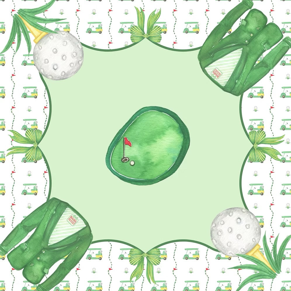 FORE! is our golf inspired mat. This is a perfect mat for men and women to gather around to play a game of mahjong at the club. It does come with a waterproof finish so if those brunch drinks are too strong, it can handle a spill!