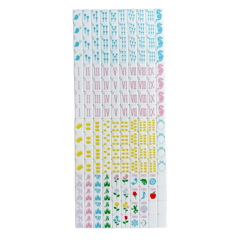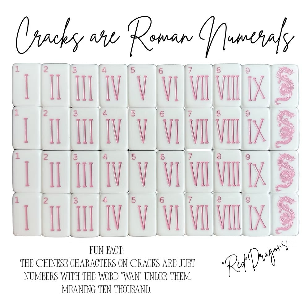 This tile set is beautiful. It features 2 layer tiles (white and pink) with engraved then painted characters.